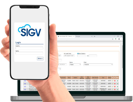 Para melhor atender nossos clientes, criamos um aplicativo onde o vistoriador através de um smartphone ou tablet preenche os dados da vistoria referente a cada equipamento e envia todas as informações em tempo real para uma plataforma, que pode ser acessada por nossos clientes a qualquer momento, efetuando consultas e mostrando o histórico de vistorias de suas frotas e situação atualizada.